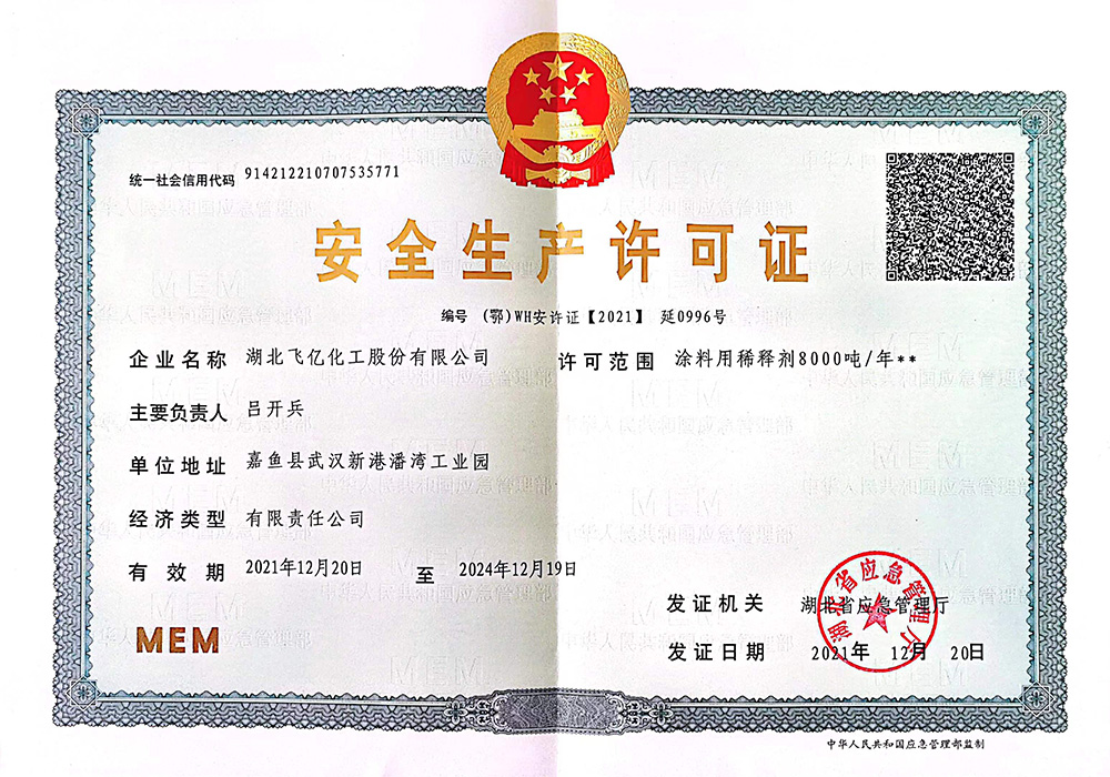 湖北飛億化工股份有限公司成立于2005年,專業從事各種油漆涂料稀釋劑的生產批發,經過公司全體員工的多年拼搏與努力,本著客戶至上、誠信至上、質量至上的三上原則和高素質、高效率、高品質的三高理念,公司在木器稀釋劑行業中取得了不菲的成績。在公司以批發為主的行銷原則下,在湖北、湖南、浙江、山東、山西、陜西、江西、貴州、廣西、廣東、安徽、河南、河北、江蘇、甘肅、青海、西藏、新疆等地建立了良好和健康的銷售網絡。湖北飛億化工股份有限公司以人為本、倡導學習。經過多年的凝聚和歷練,公司擁有豐富實踐經驗的技術人員和銷售、生產的團隊,不斷研發適合市場和客戶的高質量產品。并努力爭取各項產品和服務達到客戶滿意。為滿足市場和客戶要求,湖北飛億化工股份有限公司于2013年投資興建了占地30000平方的集生產、檢測、庫存于一體的現代化生產基地,公司熱忱歡迎有志之士與我們共同成長、共同壯大和共同發展。